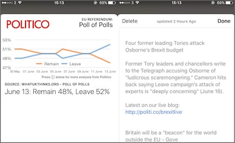 Politico Europe experiments with Apple Wallet to send push alerts about #EUref
