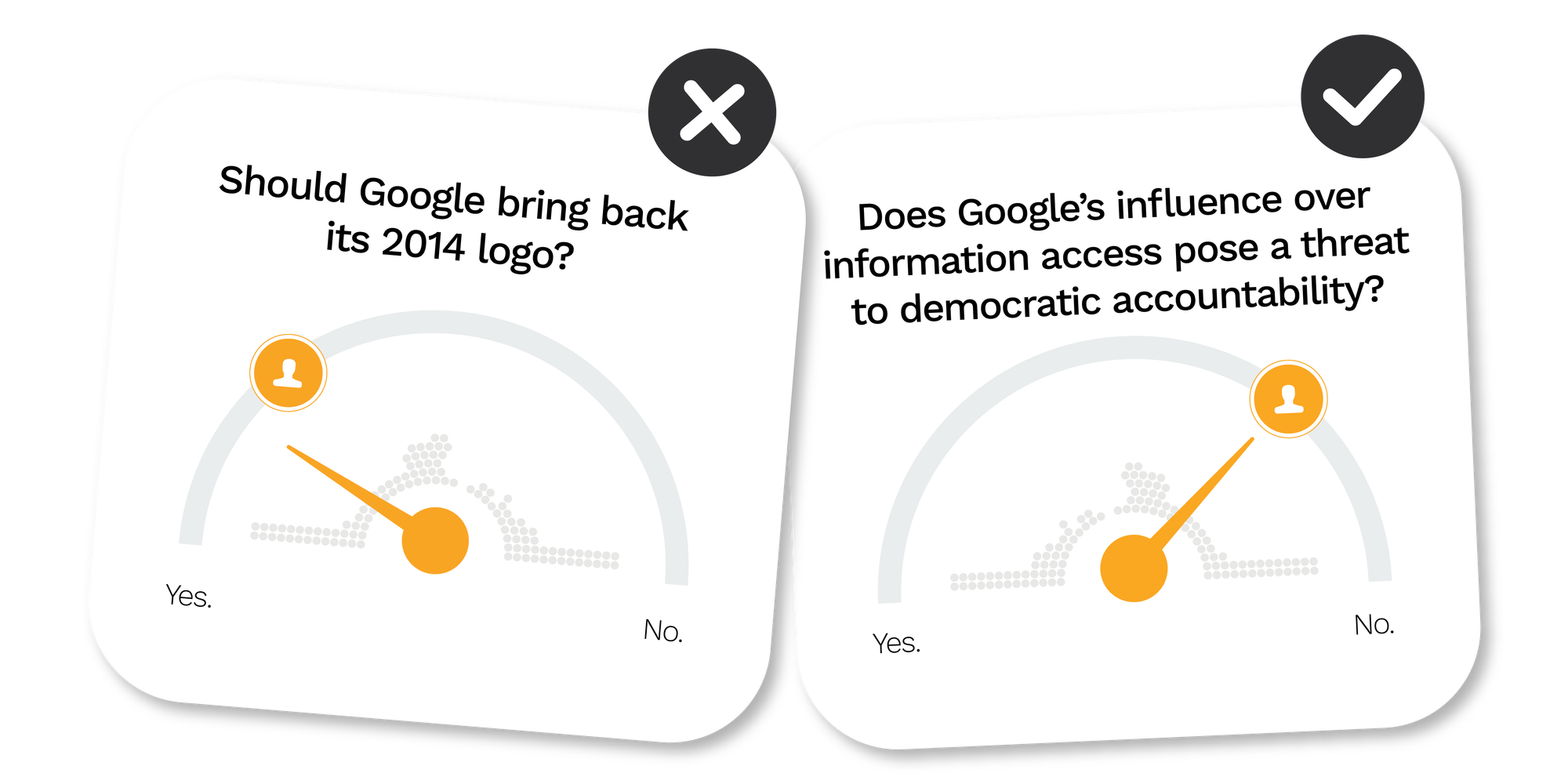 A review of polls by FT, The Times and Yahoo shows that engaging questions capture the heart of debates while staying neutral and accessible