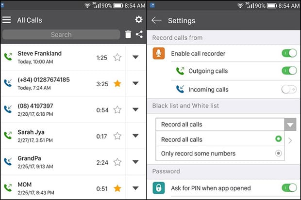 With Call Recorder, one benefit is that you can add contacts to your ‘Exclude List’, so conversations with them won’t be automatically recorded, and you can even set the app to only record conversations with specific numbers.