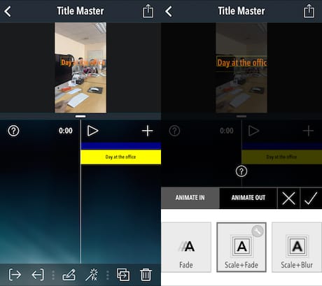 You can personalise any text and stickers with an ample choice of fonts and animations for titles and graphics. A special effects feature is also available, with a number of animation options such as scale and fade or slide.