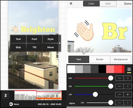 The app has a handy feature for easily duplicating your text or graphics after the custom transitions or colours are applied, to save time if you want to keep a constant style throughout the video.