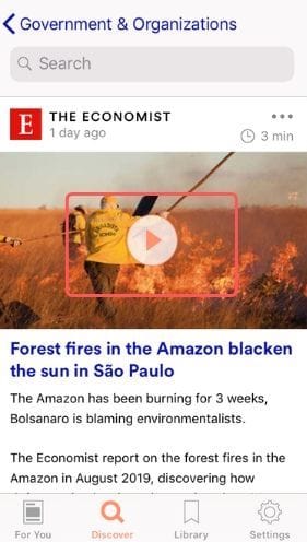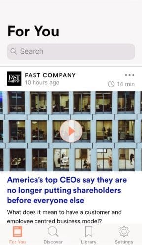 Once you have logged in and signed up, you are greeted by the ‘For You’ section - your personalised news feed made up of stories from a range of publications, including Bloomberg, the Guardian and The Economist.