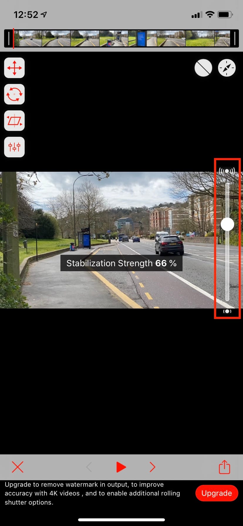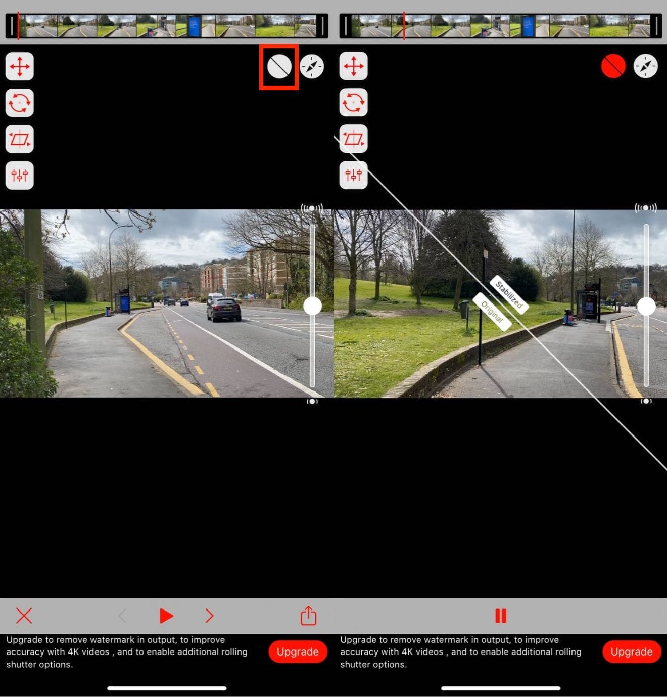 A useful tool within the app is a ‘live comparison’ between the app’s stabilised footage and the original video. This can help you decide whether to increase or decrease the stabilisation strength before exporting.