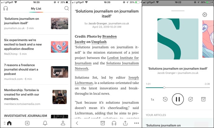You can also tap the small ‘headphones’ icon which will open and play the article in an audio format.