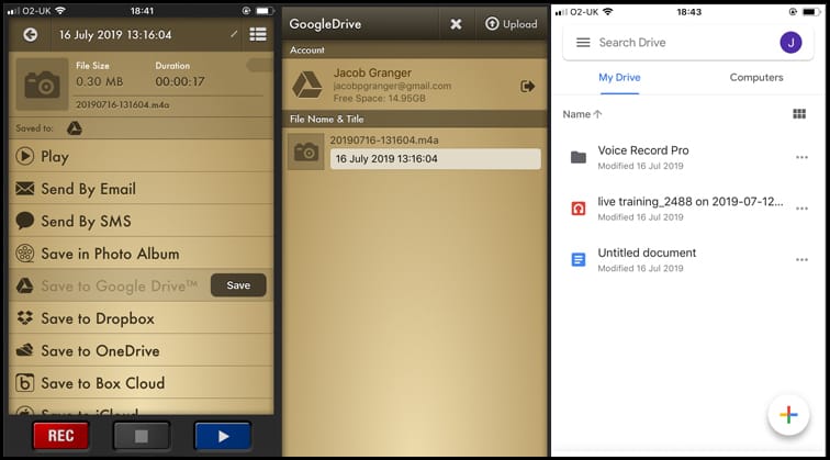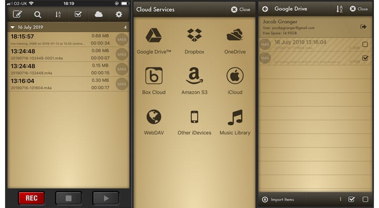 You also have the option to upload audio into Voice Recorder Pro, from platforms like Google Drive or Dropbox - but it will only work for compatible file types AAC, MP4 and M4A, and from a folder created by the app.
