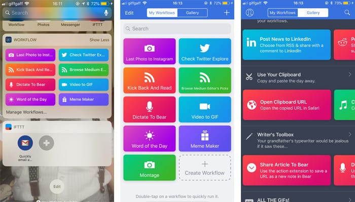 These workflows are assigned to the widget board or found in the Safari options, so users have a quick go-to option for the common tasks they run into every day.