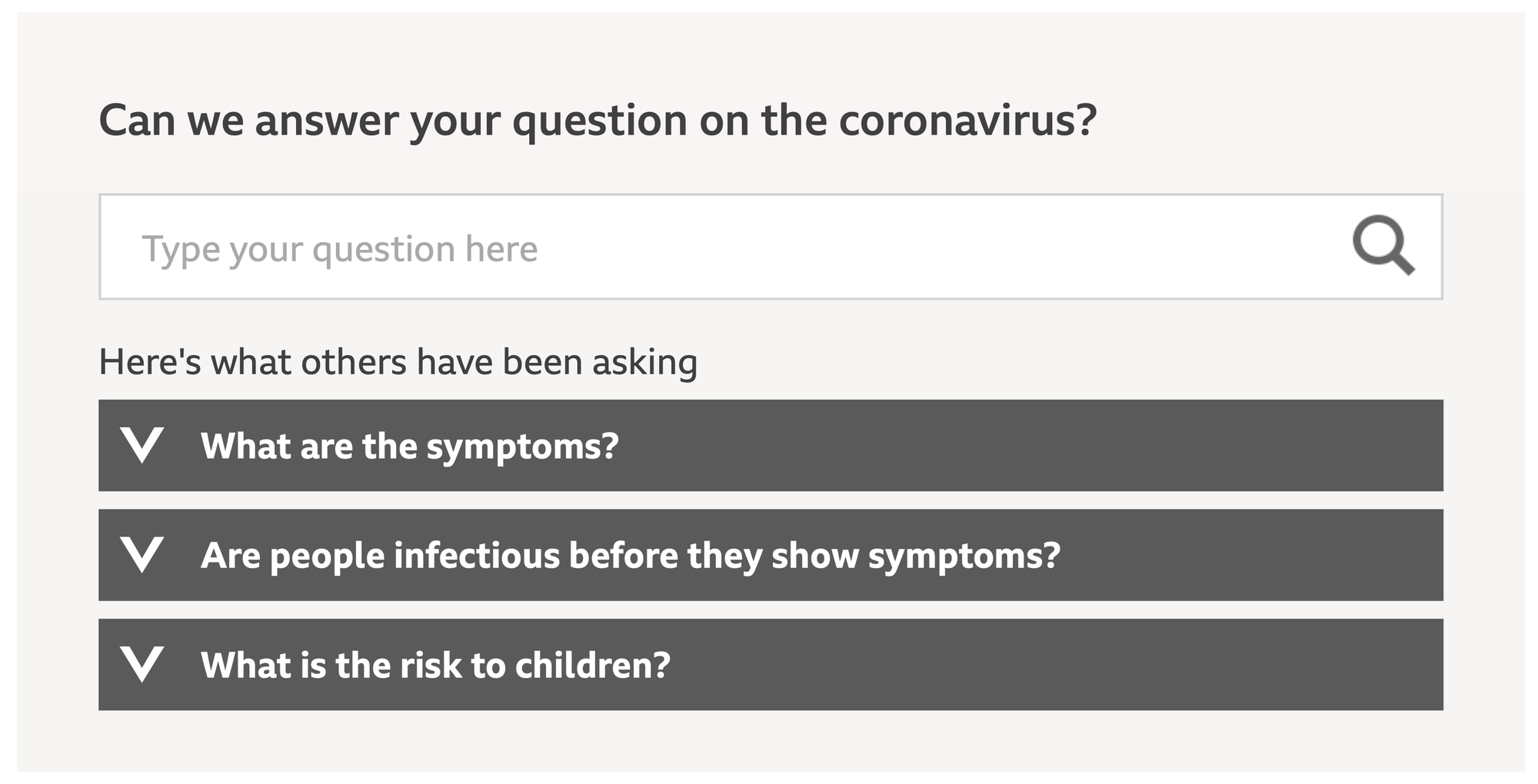 Hutton explained that the BBC’s 'Your Questions Answered' initiative, which accumulates questions from readers on a daily basis, helped give journalists and the engineers a good idea of what sort of questions people were asking when initially creating the feature. The questions the outlet receives also acted as a way of informing what extra areas need to be covered as the topic is updated, particularly amid the coronavirus crisis.