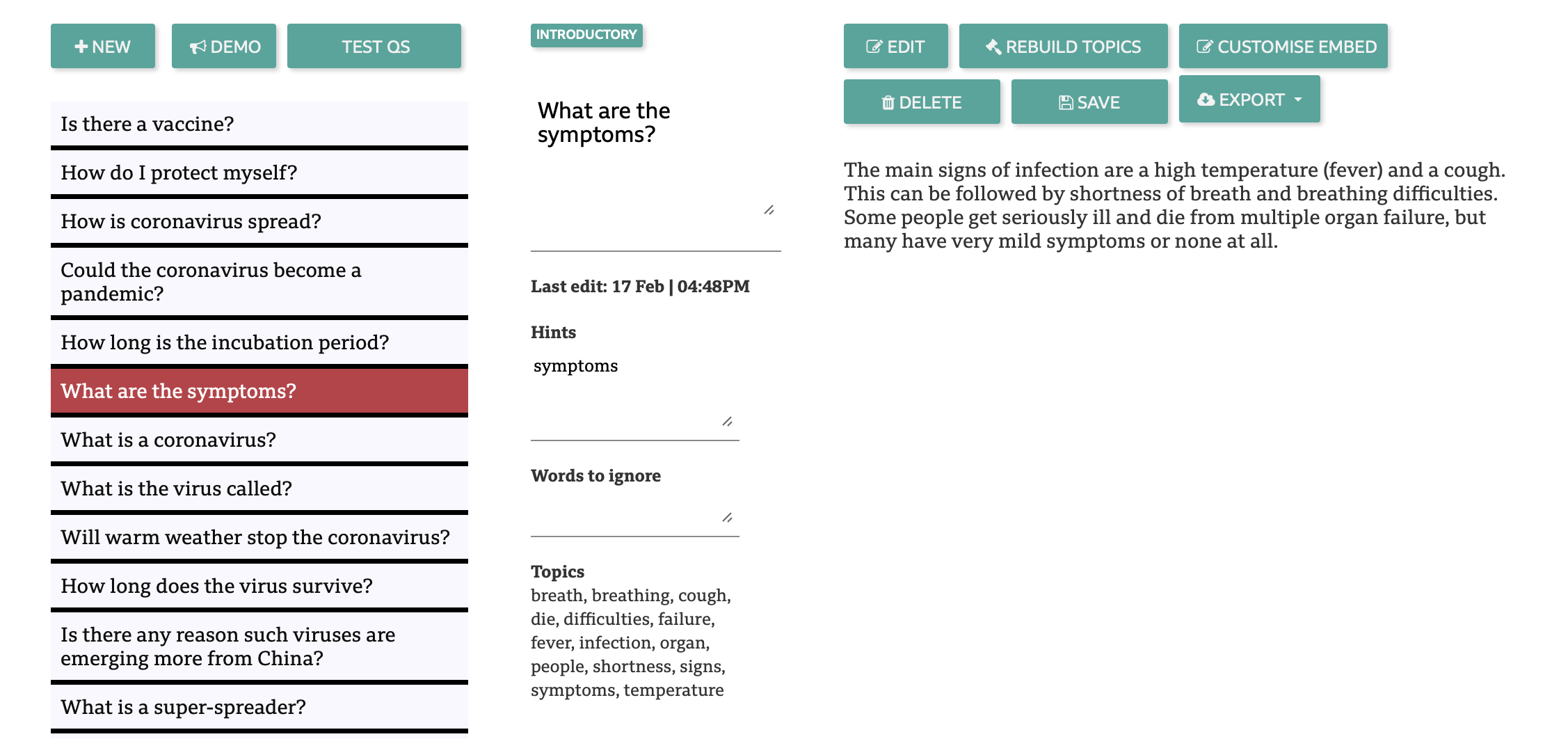 However, as the covid-19 pandemic began to escalate, the real potential for the feature and the need for constant updating with new questions became clear.