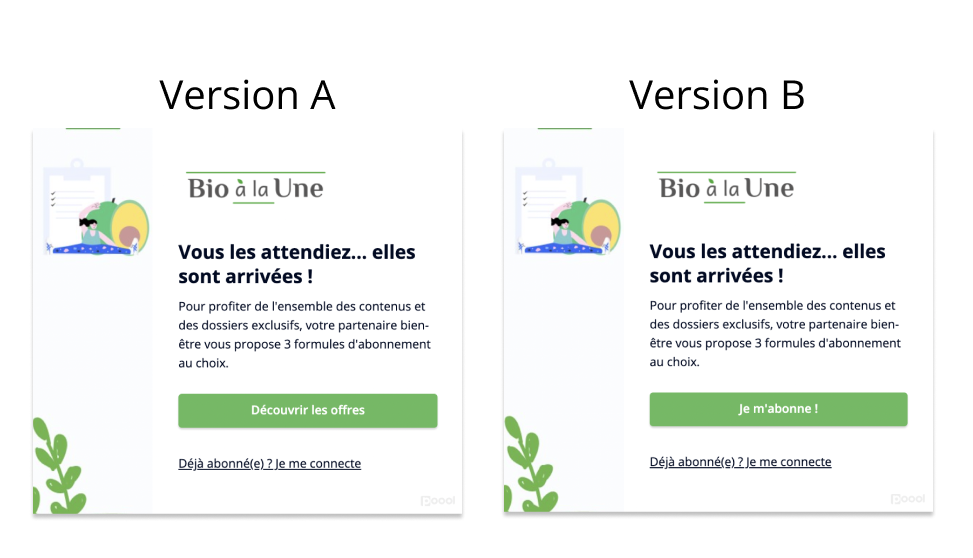 This French health and well-being publisher, who only recently launched a premium strategy, wanted to learn more about their audience and what makes them convert. They, therefore, ran a series of tests, one of these varying the wording on the call-to-action button.