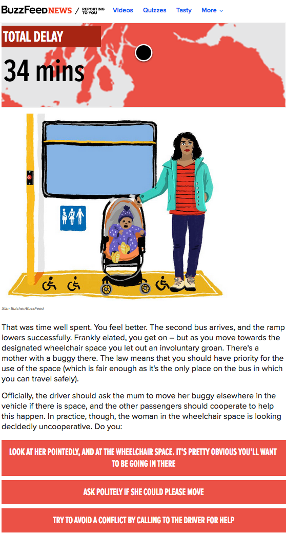 As part of its ongoing series exploring disability in the UK, BuzzFeed News published an interactive game last week, designed to help audiences understand the difficulties of using public transport as a wheelchair user.