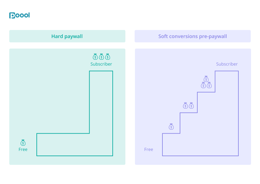 Instead of jumping directly to a hard paywall, how about leading your user across stepping stones, gradually increasing their engagement and propensity to subscribe?