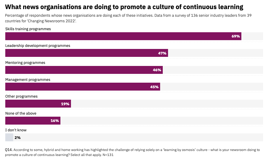 However, newsrooms have been able to compensate by providing mentorship, learning or development programmes from a distance. This is also useful for older journalists looking to acquire new skills.