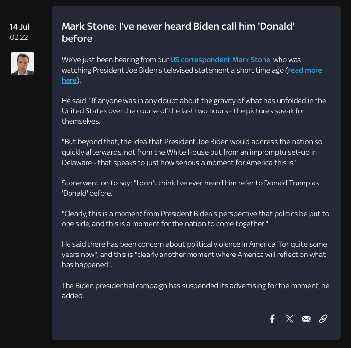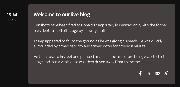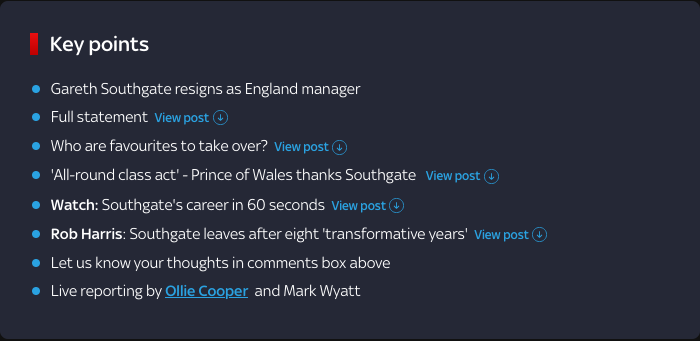 In a past few days full of breaking news - from the Trump shooting to Southgate stepping down - live blog editor Jimmy Rice details how the news organisation provides minute-to-minute updates and easy catch-ups