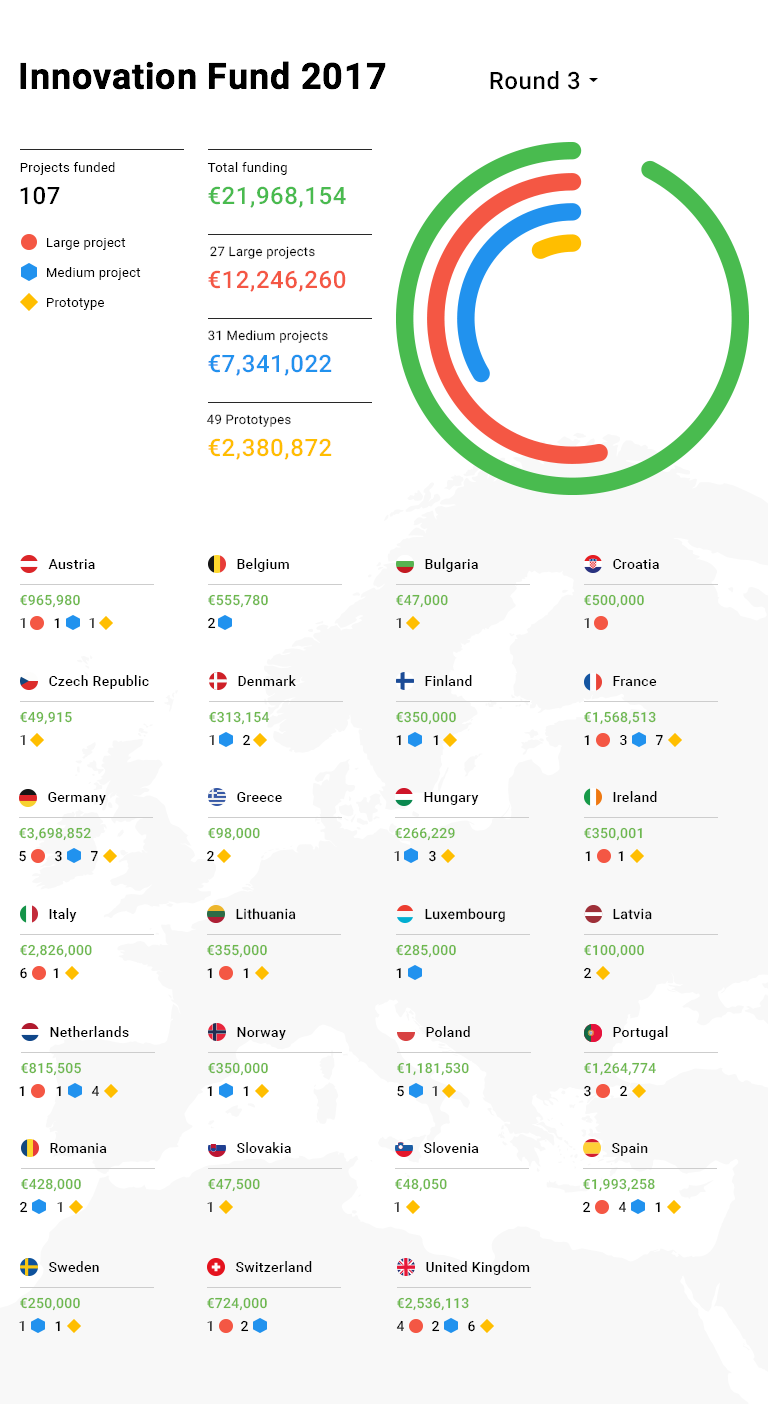The largest amount of funding went to Germany (€3.6m), followed by the UK (€2.5m), Spain (€1.9m), France (€1.5m), Portugal (€1.2m) and Poland (€1.1m).