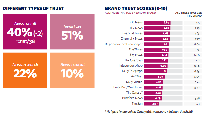 Fletcher also pointed out that the 2019 Reuters Digital News Report, which found that trust in the media continues to fall, pegs The Times above other UK brands like Sky News, The Guardian, and The Telegraph.