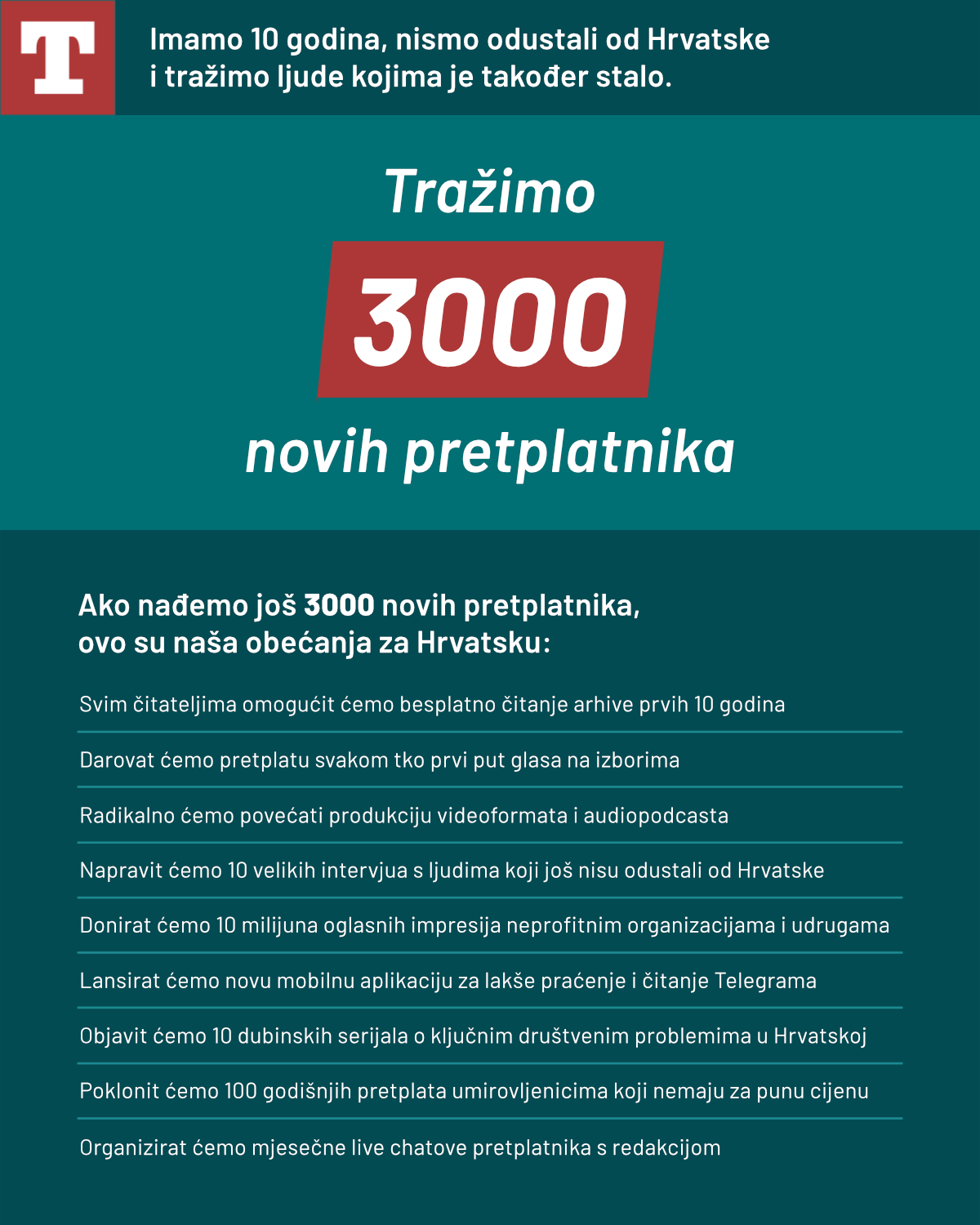 In 2025, Telegram.hr marked its 10th anniversary with a major subscription drive, inspired by a similar successful campaign at Dennik N.