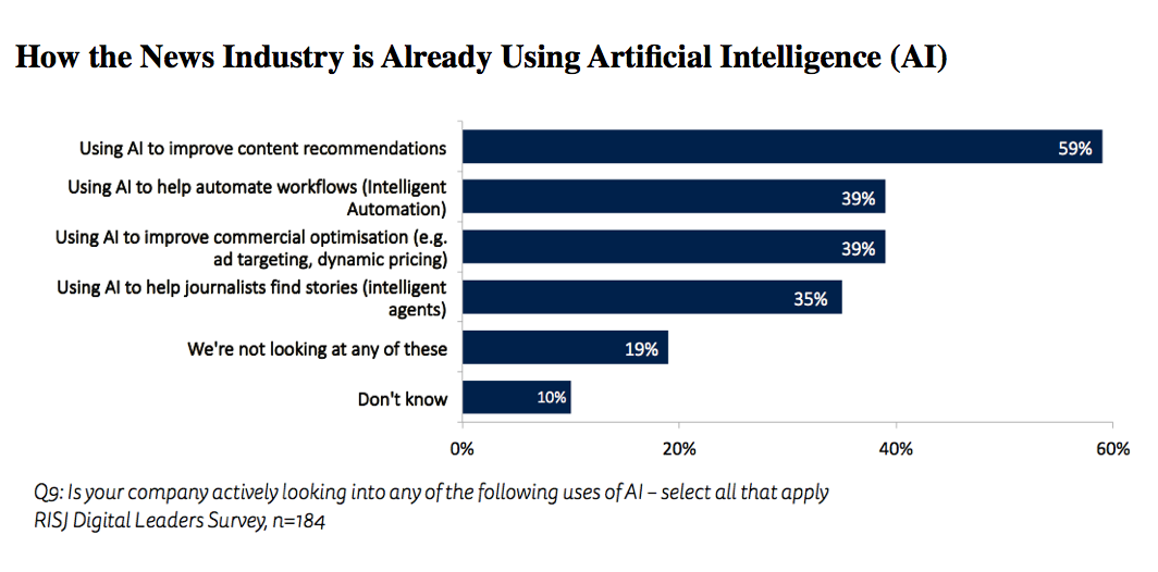 A look at the state of AI in newsrooms from the 2018 'Journalism, media, and technology trends and predictions' report published by the Reuters Institute