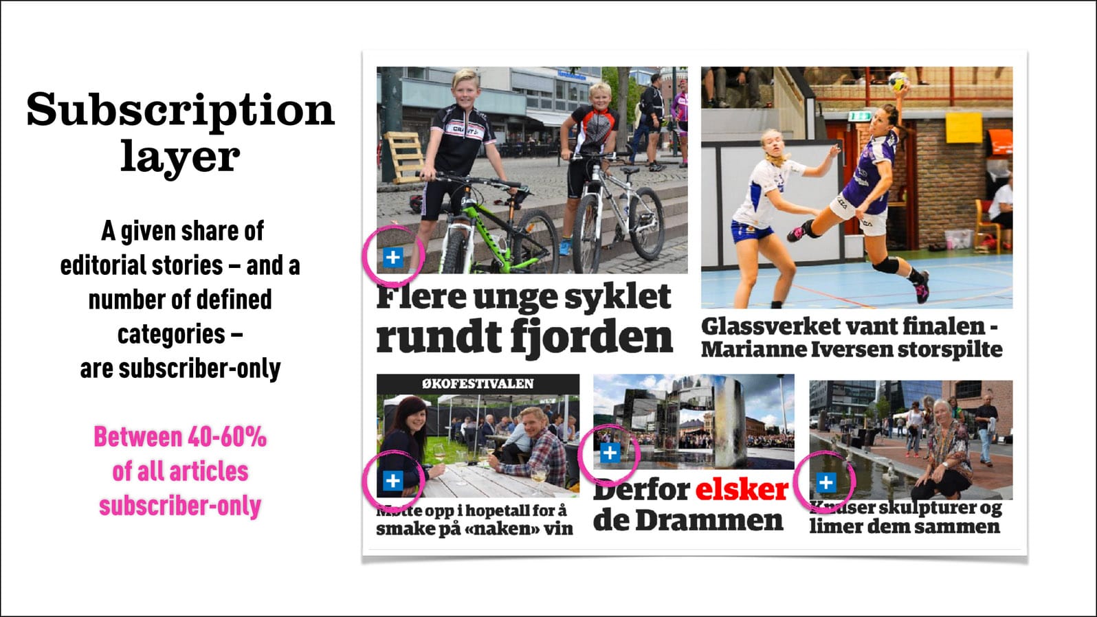 In April 2014, Amedia began to incentivise 480,000 paying print subscribers to convert to digital by giving them access to exclusive content online – around 40 to 60 per cent of the stories were unavailable to the general public depending on the publication.