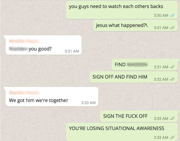 Her team made sure to stay in groups of two or more. They didn't have press badges, so there was nothing to prevent them from being arrested, and for safety it was often necessary to have someone on the lookout while another was going live.