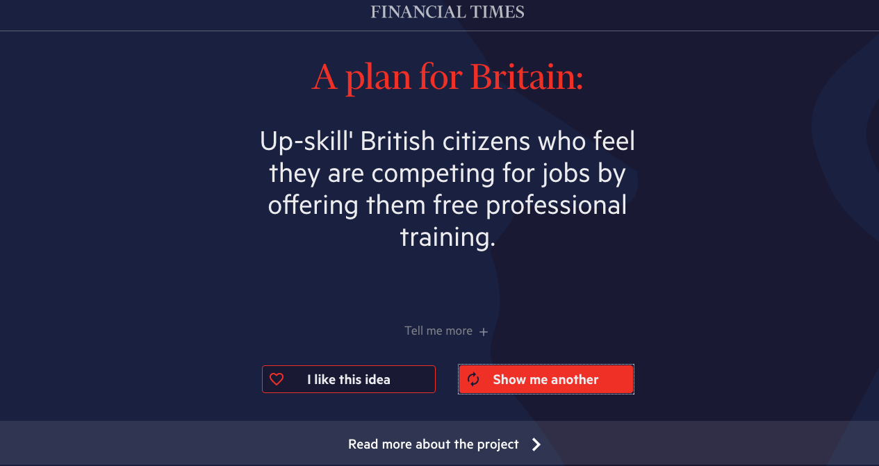 "[The Future of Britain] is the most wide-reaching call-out we've done, but we usually do surveys either because we want to know what the global FT readership thinks about an issue or to help answer the questions readers have around a topic.