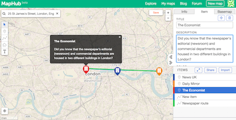 6 – Go ahead and add a few more pins to your map – I have settled on three: News UK, The Economist and Daily Mirror.
