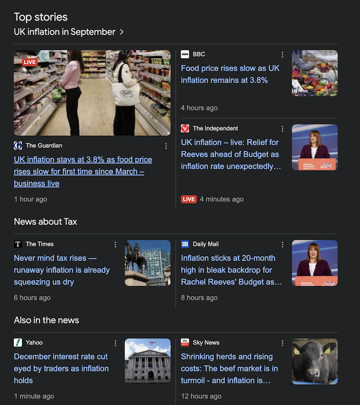 Thumbnails (small images next to your headline) are another powerful asset that gives credibility to articles on Google. Even though you’re not always guaranteed a thumbnail displayed, optimising them is easy and effective. Choose images where people are clearly visible and recognisable, or use a video thumbnail that matches the story’s main image.