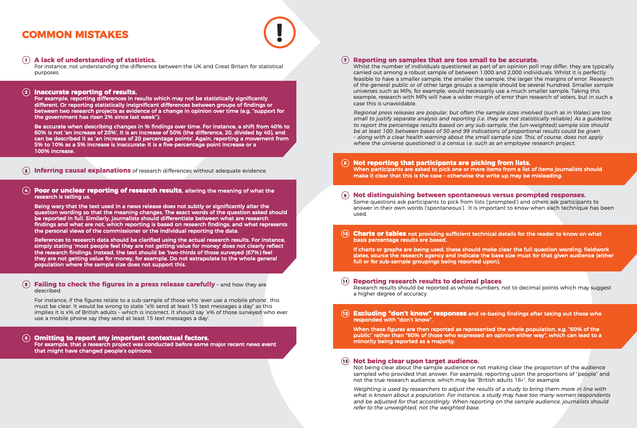 In particular, the team present 13 common mistakes made in reporting of polling data, including a lack of understanding of statistics, failing to check figures in a press release carefully, and omitting important contextual factors.