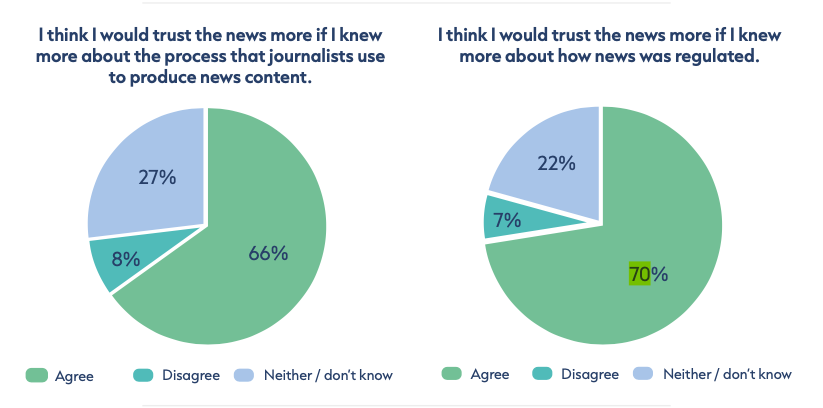 Two thirds of people say they would trust the news more if they knew more about its production, and 70 per cent say knowing more about regulation would have the same effect.