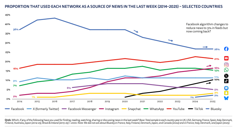 Key stat: Six platforms now reach more than 10 per cent weekly news consumption, compared to just two a decade ago,