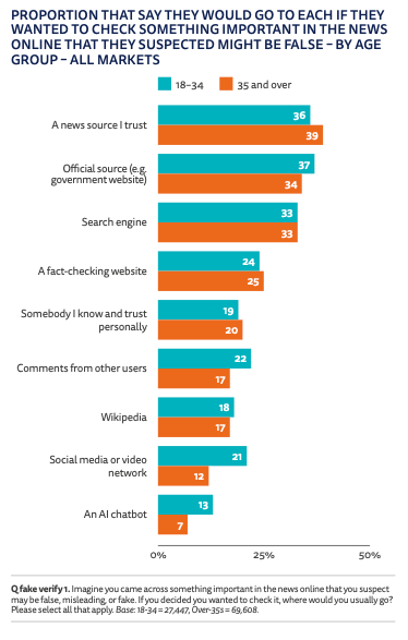 The insight: The trend that audiences seek authoritative and verified sources when encountering falsehoods appears to transcend national boundaries and global distrust patterns.