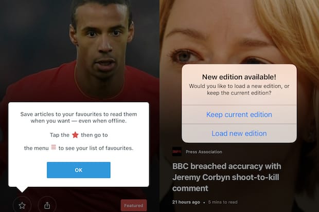 The app was revamped to include the usual morning edition that comes out in line with the printed paper, but also an evening edition that was previously only available for the tablet version.