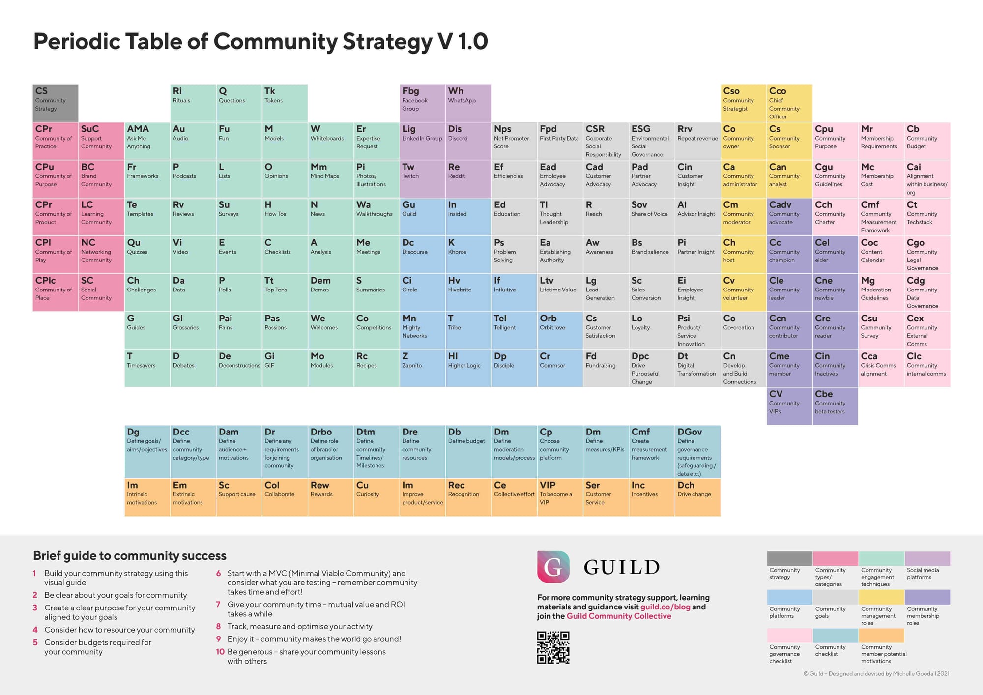Hopefully, it is helpful to those of you getting started with a community. It is also a useful reference and teaching aid for those of you who have been doing communities for decades. It was also a great excuse for creating something colourful and beautiful to share. Let’s take a look at the table, and I will explain my thinking along the way.