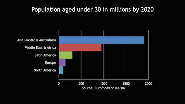 Mearns explained that Asia Pacific, the Middle East and Africa will have a much higher population of people under 30 by 2020 than Europe, according to statistics from Euromonitor International, leading the way for future mobile journalists to be on Android.