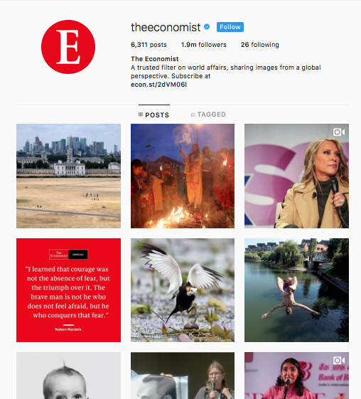 Indeed, The Economist has found that the platform not only serves as a place to post its best visual editorial content, but also as a destination to promote initiatives.