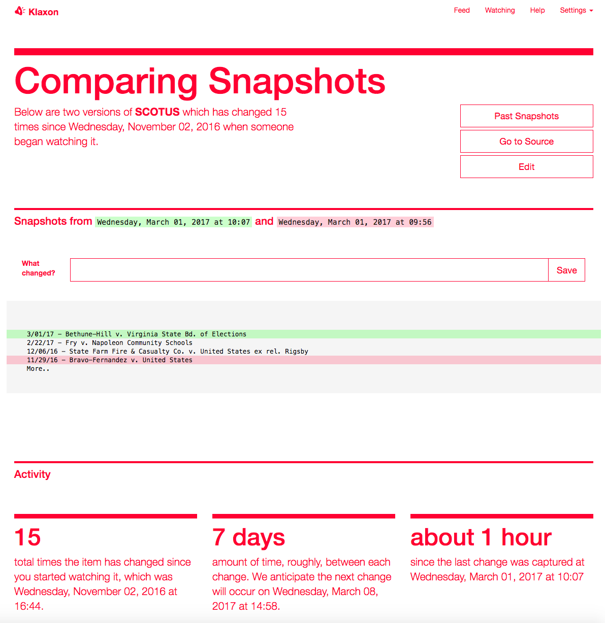 Klaxon, an open-source tool from The Marshall Project, helps journalists track newsworthy changes to websites