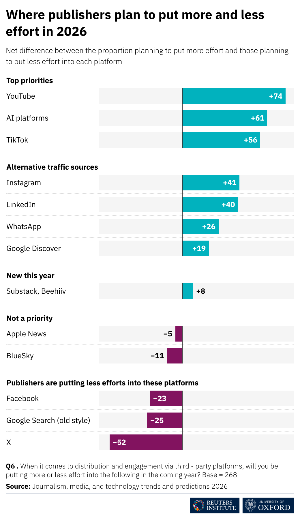 Standout stat: media leaders are expecting a 43% drop in search traffic over the next three years. Google Discover and Search are already showing significant declines, so if you've been relying heavily on search to bring readers to your door, it's time for a rethink.