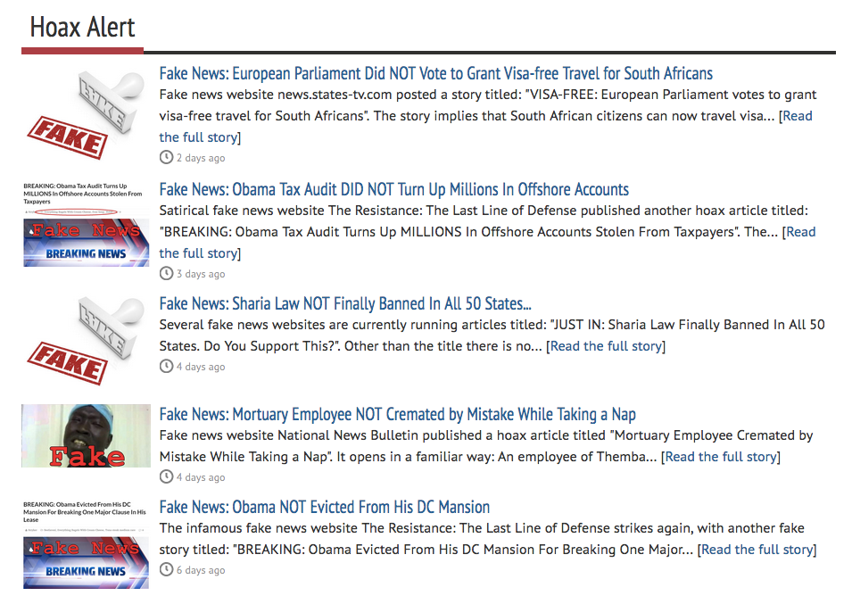 Certain websites he has found to regularly publish fake stories do not feature them on their own front page, populating it instead with news stories that can be verified.