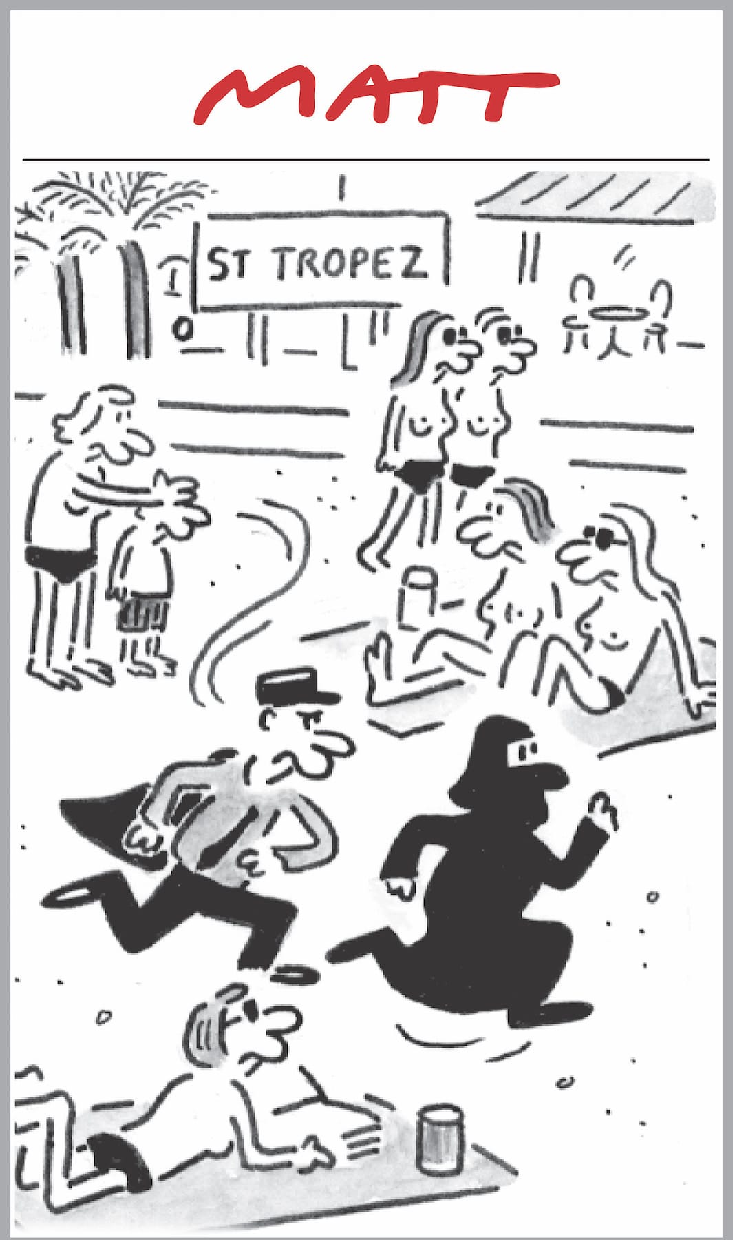 "It was when the French banned the burqa. It's a very sensitive subject, but I thought that if you were wearing a burqa you might be chased by the police, and you might be chased by them through a topless beach in Saint Tropez, and that is what I drew.
