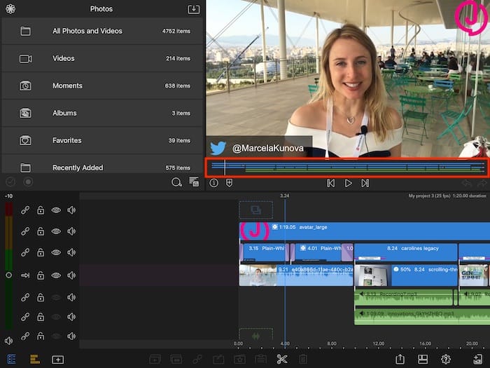 Playback in the app has also been fine-tuned so that you can move move frame-by-frame through your project. By pressing and holding the play button, you can find the precise moment in the project where you need to make your edit.