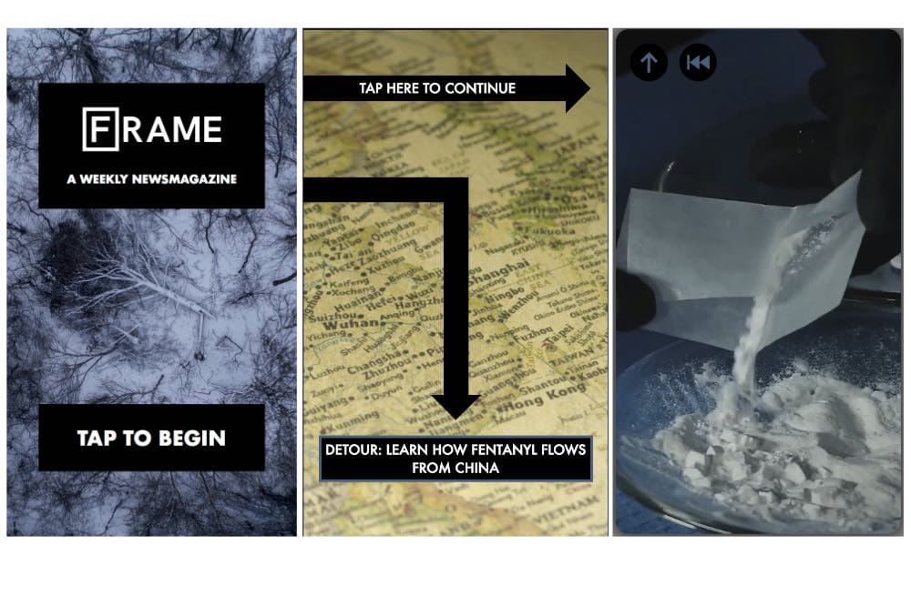 One of Frame’s first stories Deconstructed: Fentanyl offers a sneak peek of their interactive format and what audiences can expect. The viewer follows a story of an 18-year-old’s death from a fentanyl overdose and the international investigation prompted by this tragic event.