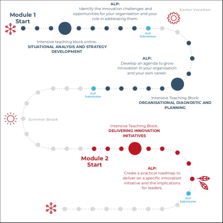 The course description reads: "Our solutions-based approach means that you will be offered a range of assessments that allow you to demonstrate your ability to apply critical insights to professional practice. You will normally have individual and group tasks during the intensive teaching blocks followed by an Applied Learning Project that gives you a chance to provide immediate value to your organisation."