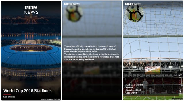 Robert McKenzie, editor, BBC News Labs, explained that the World Cup is a great opportunity to experiment with the format as Stories provide a heavily visual experience. Collaborating with BBC Russian helped them to source some great pictures of the stadium – and the first World Cup AMP Story was born. The BBC has also published an AMP Story on Russia's World Cup Hopefuls, staring a handful of domestic players.