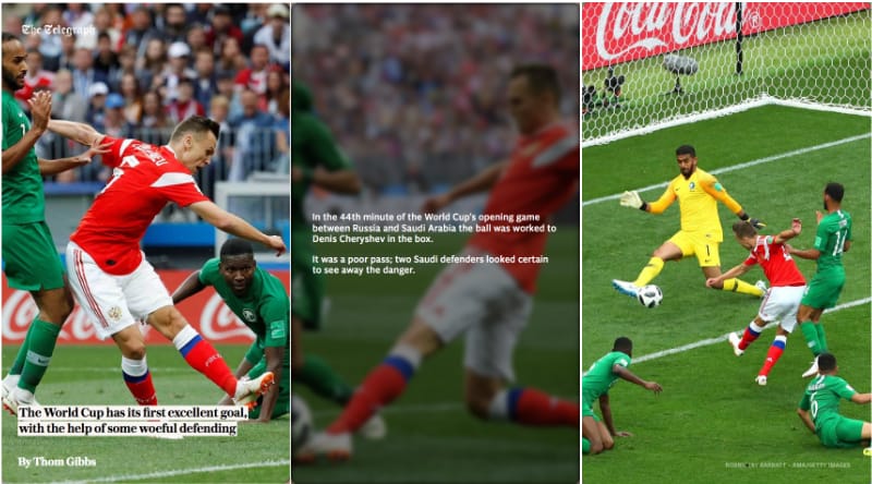 The Telegraph published their first World Cup AMP Story on Thursday 14 June after the Russia vs. Saudi Arabia match. However, Hutchison's team already produced a successful AMP story in May, which was a feature piece from Mosul by Sam Tarling and Josie Ensor.