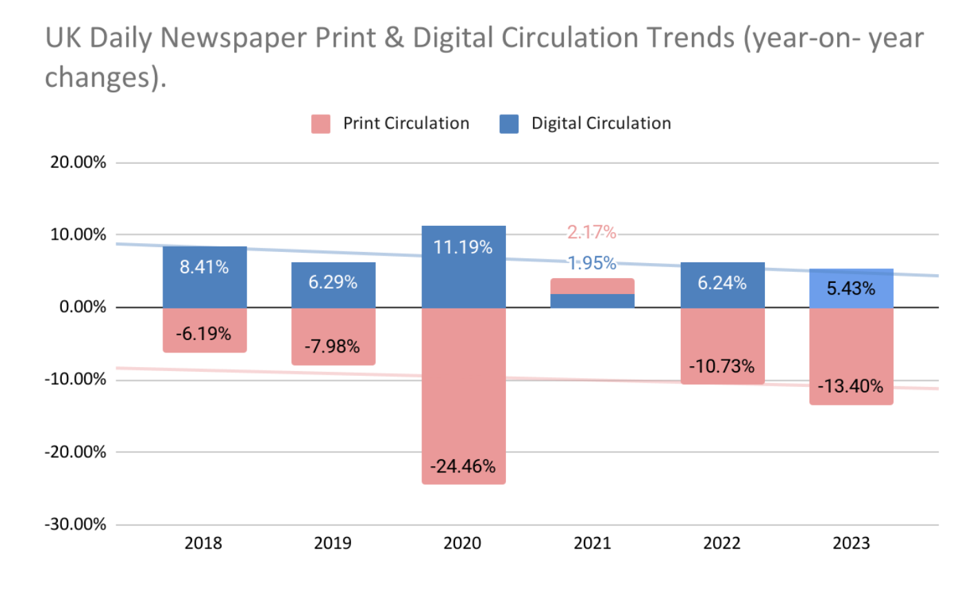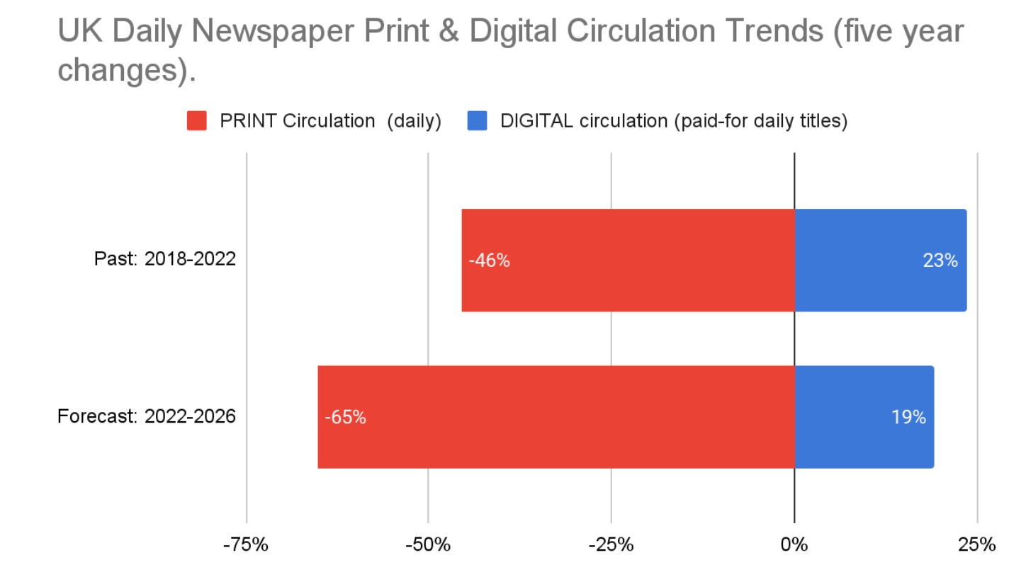What a tumultuous, newsy year It has been. Even so, UK news publishers have seen paid-for daily print circulations shrink in 2022 and only a comparatively modest rise in digital subscriptions. The expectation is that this long-term trend will continue next year - and even escalate in the years ahead.