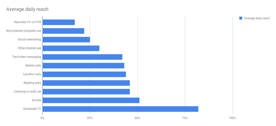 But it was still placed behind watching scheduled TV, using mobiles and other uses of the internet, including email.