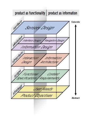 To better understand how information architecture can deliver value to journalism, Rissen referred to a diagram by Jesse James Garrett in 'The Elements of User Experience'.