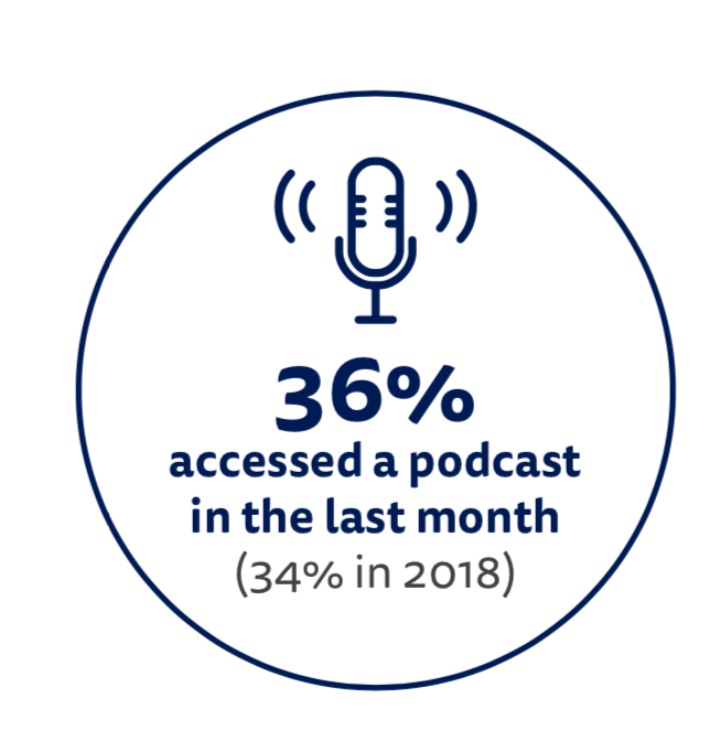 The rise of podcasts is just one of the many issues covered in the 2019 Digital News Report from the Reuters Institute for the Study of Journalism. You can find out more about the methodology and view or download the full report from the report website.