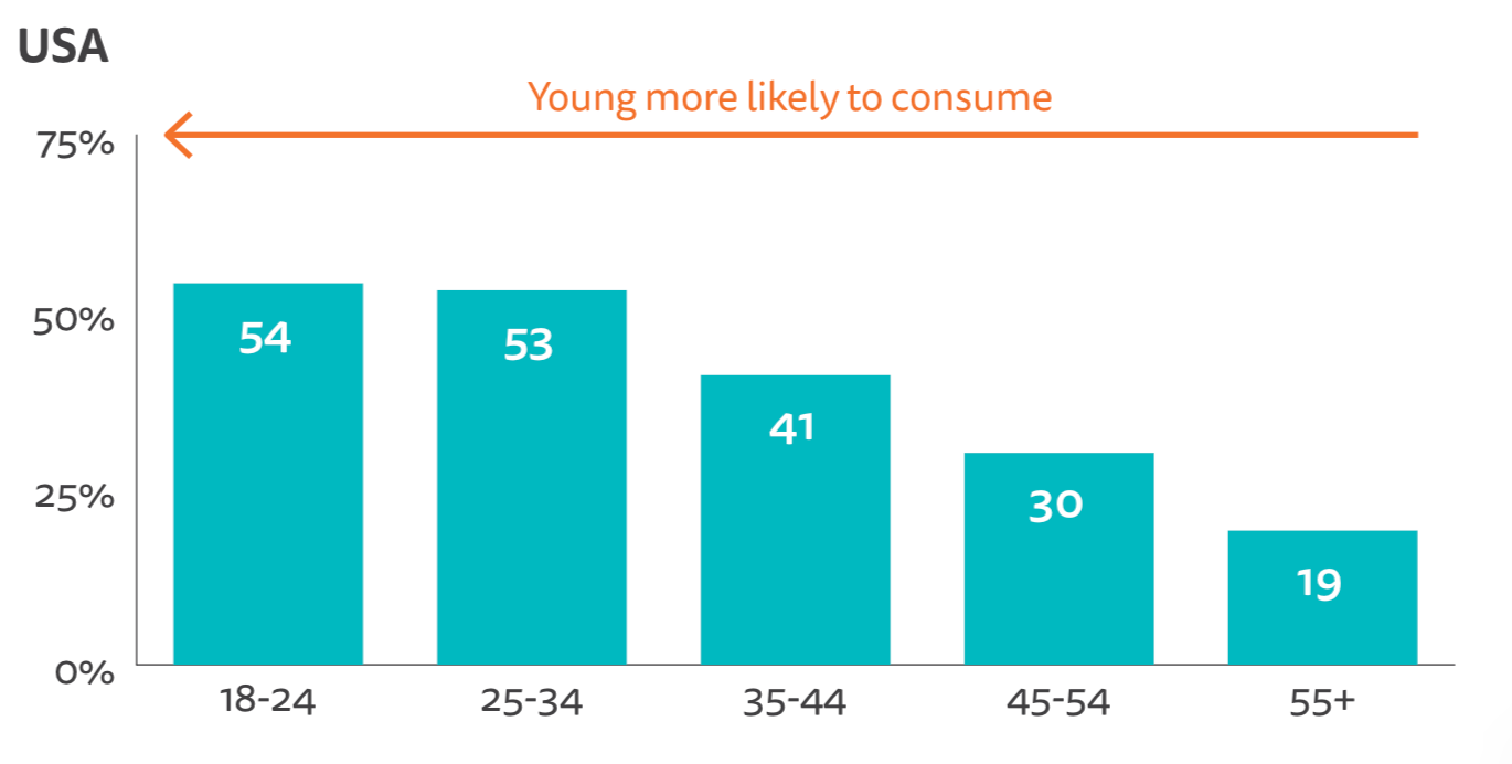 Younger age groups, who spend much of their lives plugged into smartphones, are twice as likely to listen to podcasts than over 55s – and much less likely to listen to traditional speech radio. In the UK, under 35s consume half of all podcasts despite making up around a third of the total adult population – and it is a similar story in the United States.