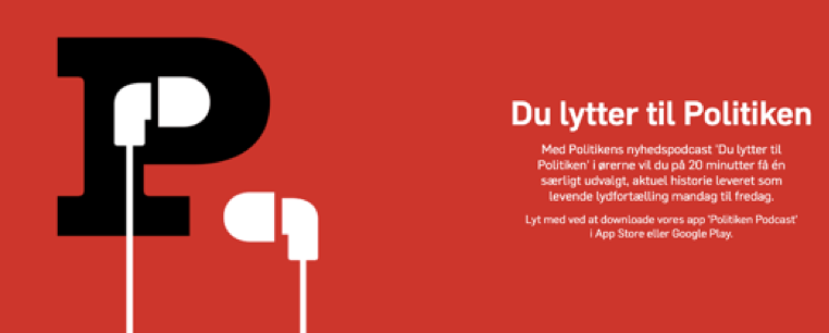 The New York Times and the Economist offer special offers to podcast users while the Guardian has also been experimenting with different ways to ask for donations. The hope is that listeners will be more likely to contribute after engaging for significant periods of time with content that they value. In Denmark, the upmarket Politiken has started to restrict its successful daily news briefing just to subscribers for a number of days each week.