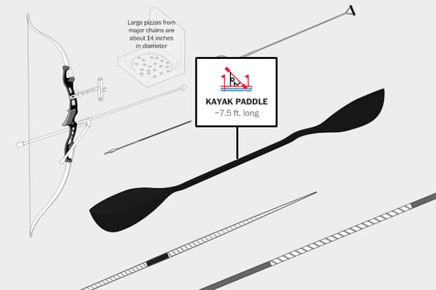 To illustrate the size of Olympic equipment, tracks and other locations, The Washington Post put together a visualisation comparing them to common objects including a soda can and a large pizza box.